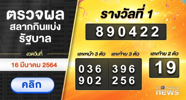 ผลสลากกินแบ่งรัฐบาล ตรวจหวย งวดประจำวันที่ 16 สิงหาคม 2564